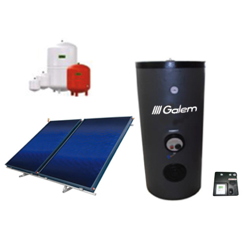 Forced circulation systems are composed of Galem Galem SV solar collectors (vertical) or SH (horizontal), a structure for flat or sloping roof, interacumulador Galem IN / 1, solar control, hydraulic and heat transfer fluid group.