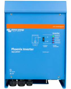 The Victron Phoenix 24V 3000VA Inverter extracts the energy stored in the batteries, converting it into single-phase current.