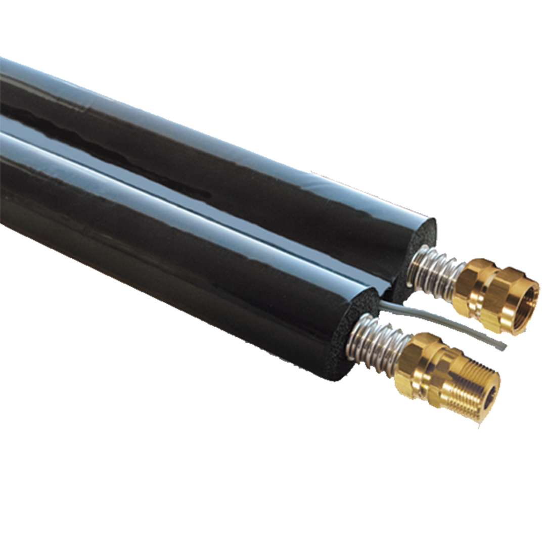 Sistema de tuberías, rápido para instalaciones solares, para entubar en el interior y en el exterior, 2 tubos ondulados de acero inoxidable, aislado con caucho celular resistente a altas temperaturas y los rayos UV.