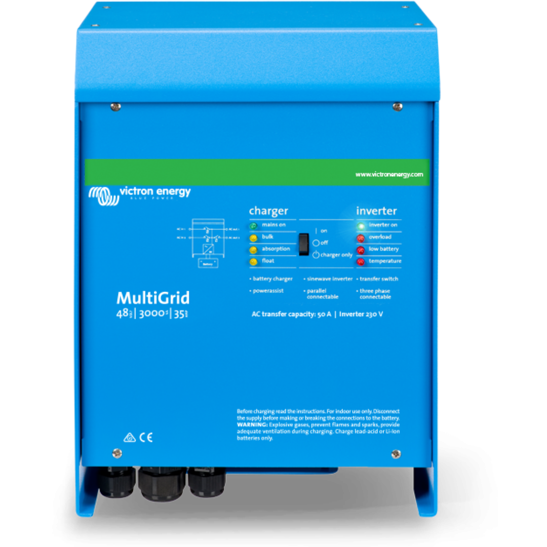 Victron Multigrid inverter / charger for self-consumption that ensures optimal operation in installations connected to the network and that wish to use batteries.